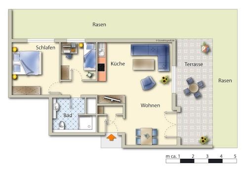 Diese helle Erdgeschosswohnung überzeugt mit ca. 77 m² Wohnfläche und einer durchdachten Raumaufteilung. Drei gut geschnittene Zimmer bieten Platz für Wohnen, Schlafen und Arbeiten. Der offene Wohnbereich mit Zugang zur Terrasse schafft eine angenehme Verbindung zwischen Innen und Außen – ideal für entspannte Stunden im Freien.