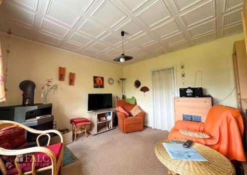 Im Inneren erwartet Sie ein offener, freundlicher Eingangsbereich mit integrierter Küche, der in den Wohnbereich übergeht. Das Wohnzimmer ist mit einem Kamin ausgestattet, der an kühlen Tagen angenehme Wärme spendet und dem Raum eine gemütliche Atmosphäre verleiht. Ein separates Schlafzimmer sowie ein kleines, funktionales Duschbad komplettieren das Wohnangebot.