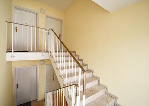 Treppenhaus: Betontreppe belegt mit Jura Marmor,