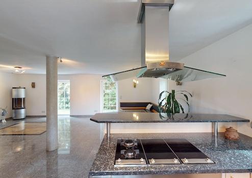 - hochwertige Einbauküche mit Theke und Granit-Arbeitsplatte