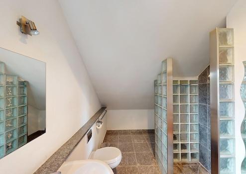 Insgesamt drei Bäder, verteilt auf die verschiedenen Etagen, sorgen für Alltagstauglichkeit im Familienbetrieb. In den oberen Geschossen sind hochwertige Parkettböden verlegt. Neben Schlafzimmern, Kinder- oder Gästezimmern stehen Ihnen auch ein Büro mit Vorraum, eine Ankleide, ein Hauswirtschaftsraum sowie eine Speisekammer zur Verfügung. Der Dachboden bietet zusätzlichen Stauraum.
