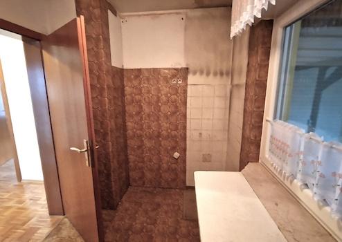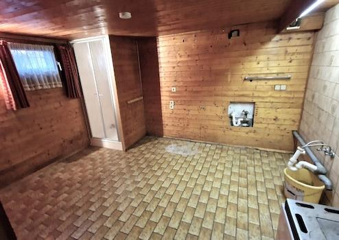 Küche: Die derzeit kleine Küche könnte durch Verlegung ins Esszimmer und einen Wanddurchbruch zum Wohnzimmer vergrößert werden. Die ehemalige Küche ließe sich als praktischer Abstellraum nutzen.