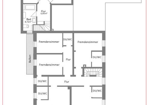 Hinzu kommt ein Bereich mit mehreren Fremdenzimmern, welcher mit wenig Aufwand zu einer weiteren großzügigen Wohnung umgebaut werden könnte.
