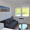 Esstisch mit 2 Sitzplätzen, Schlafsofa, Kleiderschrank, Arbeitstisch, TV, Internet,