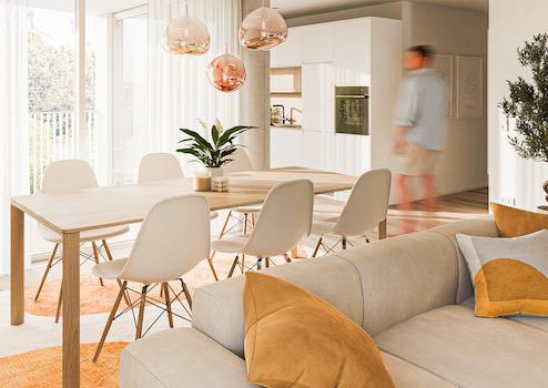 Helle Räume mit großzügigen Fensterfronten schaffen eine angenehme Offenheit, während jede Wohnung mit einer eigenen Loggia einen privaten Rückzugsort ins Freie bietet - für ruhige Morgenstunden, sonnige Nachmittage und entspannte Abende.
