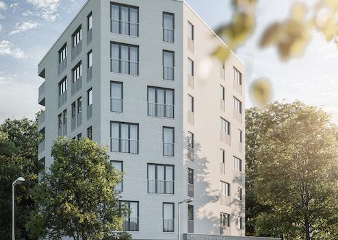 In der Freudenthalstraße 6 entsteht ein Zuhause, das mehr kann als nur Raum bieten. Das moderne Mehrfamilienhaus mit 18 Wohneinheiten bietet mit einem durchdachten Wohnkonzept Raum zum Wohlfühlen.