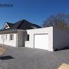 Die großzügige Garage verfügt über einen angrenzenden Abstell- bzw. Geräteraum und bietet praktischen Zugang direkt ins Haus sowie in den rückwärtigen Garten – besonders komfortabel bei Einkäufen oder schlechtem Wetter. Das Gartengrundstück wird komplett angelegt und umfasst eine gepflegte Rasenfläche, eingefriedet durch eine dichte Lorbeerhecke, die nicht nur Sichtschutz, sondern auch eine grüne Oase schafft. Die Terrasse, teilweise überdacht und mit Massivstützen versehen, wird großzügig gepflastert – perfekt für Gartenmöbel, Grillabende oder ruhige Lesestunden. Auch die Hoffläche wird vollständig und ansprechend gepflastert.