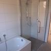 Das geschmackvoll ausgestattete Hauptbadezimmer erfüllt höchste Ansprüche. Es verfügt über eine moderne bodengleiche Dusche mit Glastür, einen Handtuchheizkörper, ein formschönes Hänge-WC sowie ein elegantes Waschbecken. Die Wand- und Bodenfliesen sind hochwertig und harmonisch aufeinander abgestimmt. Praktische Ablageflächen und zeitlose Materialien sorgen für eine angenehme Wohlfühlatmosphäre. Das separate Gäste-WC ist ebenso ansprechend gestaltet – mit Hänge-WC, Handwaschbecken und deckenhoher Verfliesung. Beide Bäder werden mit eleganten Marken-Armaturen und hochwertigen Sanitärkeramiken ausgestattet, die sowohl funktional als auch stilvoll sind.