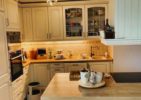 - die wunderschöne Landhausküche mit allen elektrischen Gräten ist im Preis inklusive, ebenso Spiegelschränke im Flur hell gefliestes Badezimmer