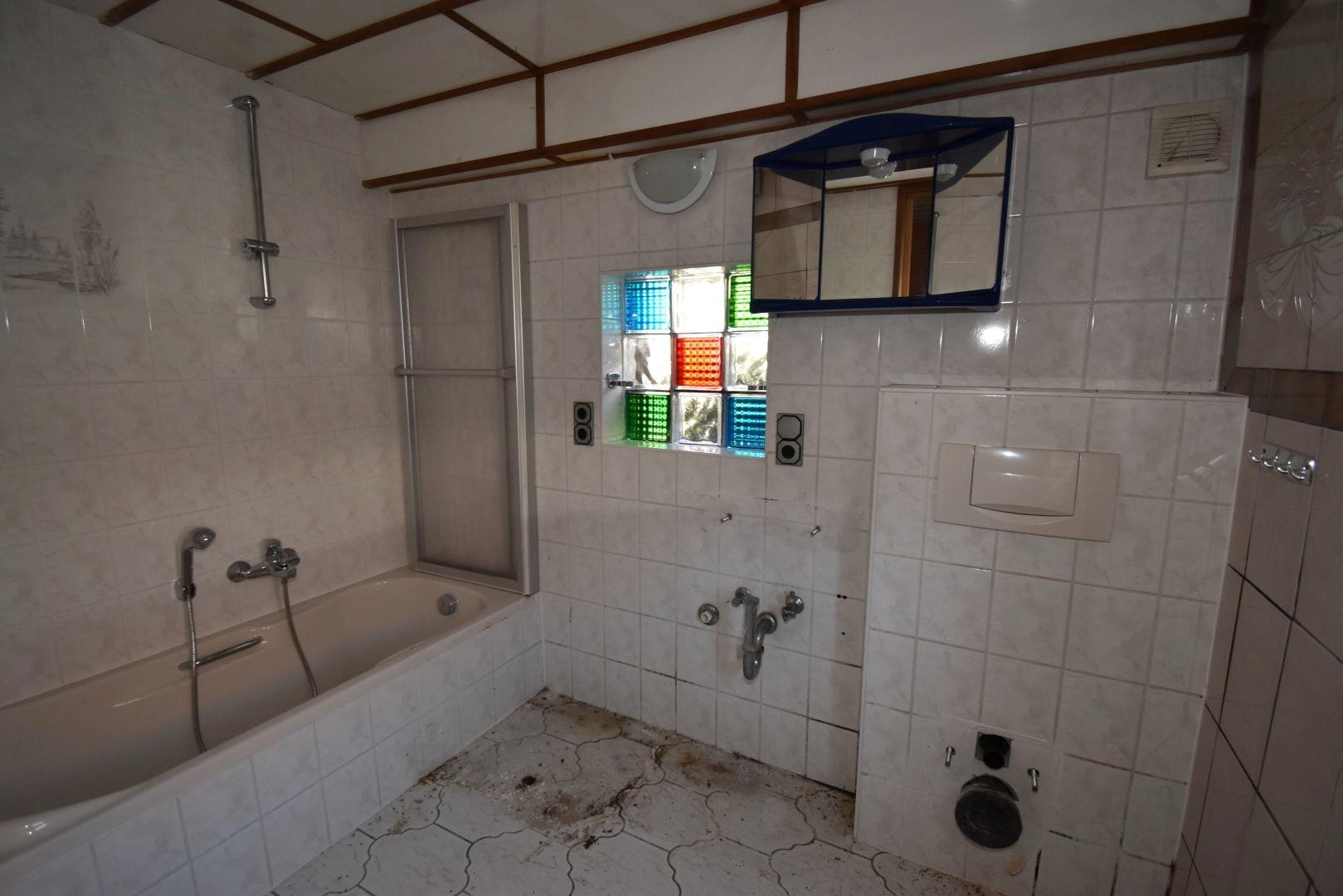 EG = Bad mit Dusche, Badewanne, Handwaschbecken (alt)