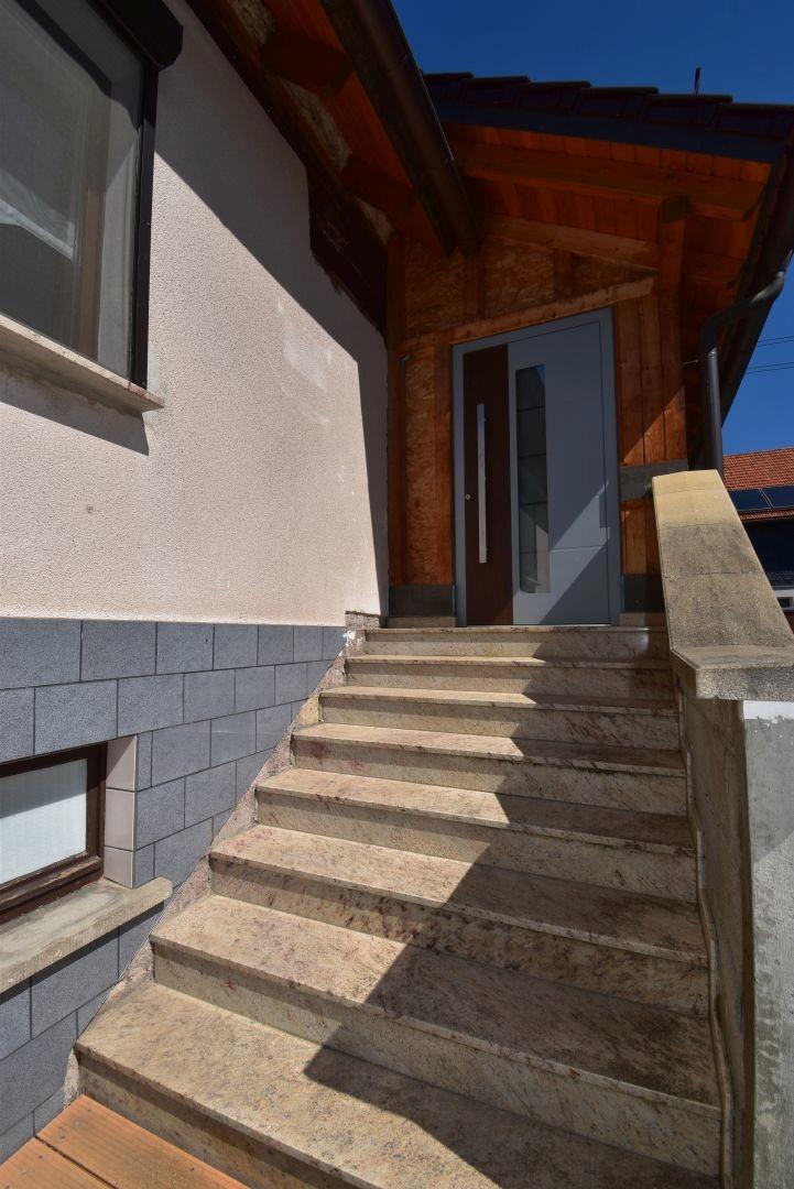 Obergeschoss = Holzfülltüren, teilweise mit Glasausschnitt (2017), 2-fach verglaste Kunststoffbalkontür (2017)