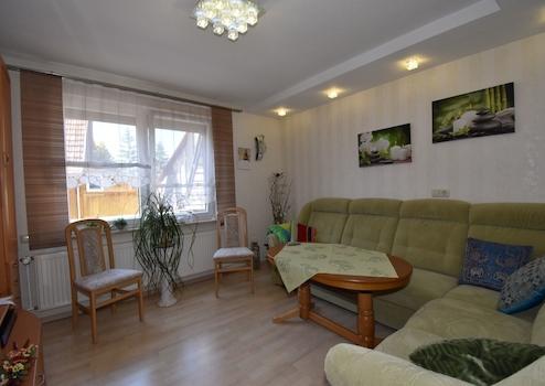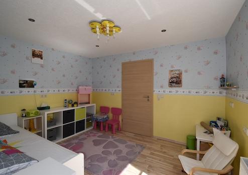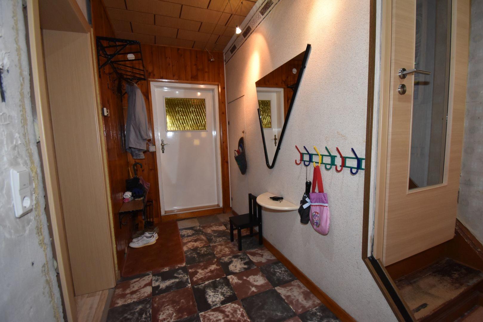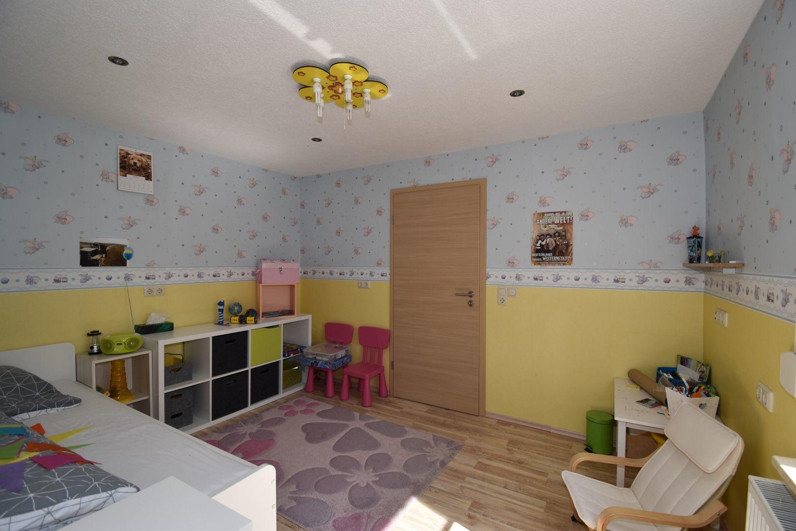 Erdgeschoss: Flur, 2 Kinderzimmer, Küche, Schlafzimmer, Wohnzimmer, separates WC, Bad, Abstellraum, Zugang zum Keller
