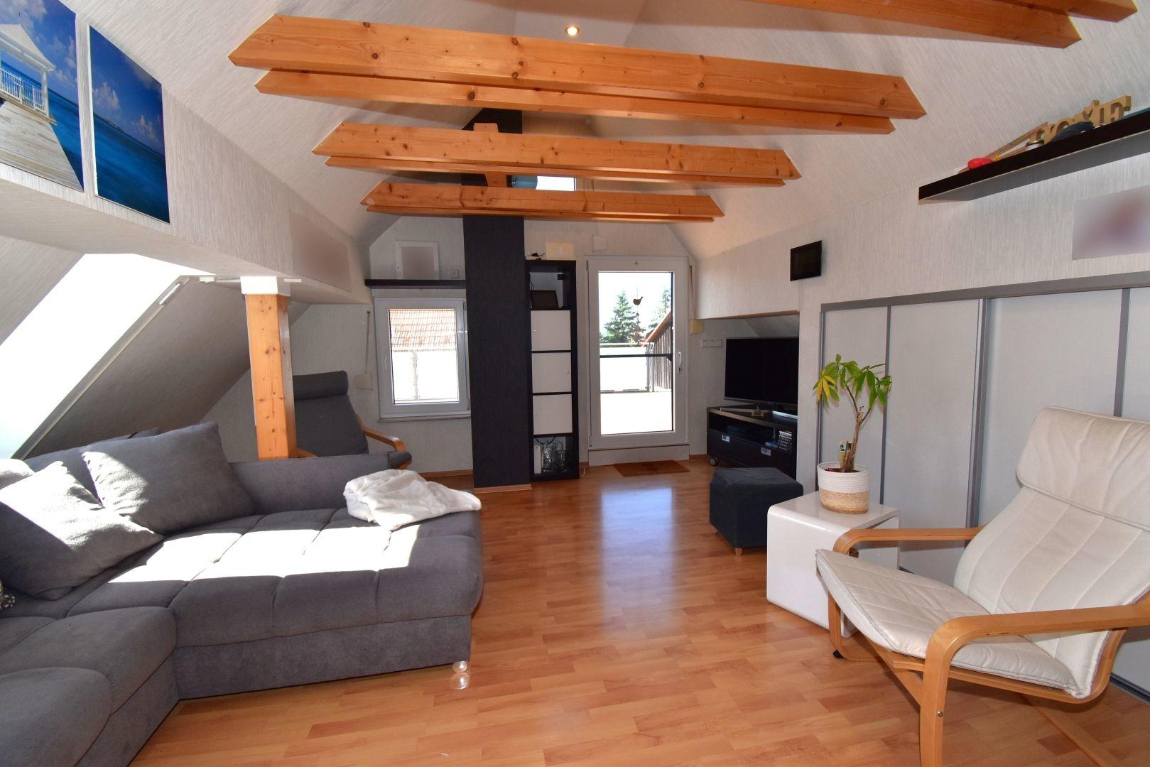 Lage: Erdgeschoss, linker Eingang und komplettes Dachgeschoss