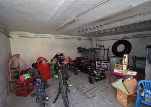 massive Garage unter der Dachterrasse mit zweiflügeliger Tür mit Wohnhaus verbunden