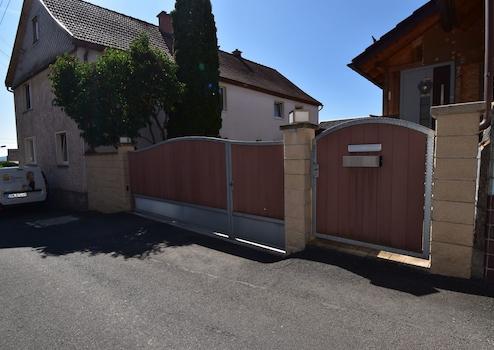 Erdgeschoss straßenseitig = Natur- und Eternitschiefer, teilweise gestrichen