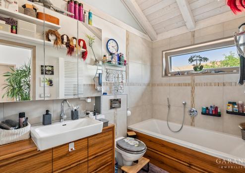 Technisch ist das Haus auf dem neuesten Stand: Eine hocheffiziente Be- und Entlüftungsanlage mit Wärmerückgewinnung sorgt für ein angenehmes Raumklima, während die 16,5 kW PV-Anlage auf dem Dach und der 10,4 kW Speicher Energieeffizienz und Unabhängigkeit garantieren. Hochwertige Insektenschutzgitter, Schallisolierung und Dämmung unterstreichen den Komfort.