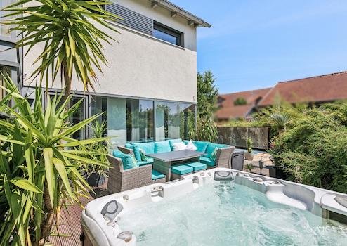 Frisch gestrichene Fassade, stilvolle Modernisierung von Schlafzimmer und Essbereich sowie hochwertige Vorhänge runden das Gesamtbild ab. Dieses Haus ist ideal für anspruchsvolle Käufer, die Wert auf Design, Komfort, Wellness und flexible Nutzungsmöglichkeiten legen.