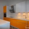 Die hochwertige EBK mit Arbeitsplatten aus Stein, Küh-Gefrierkombi, Geschirrspüler, Backofen, Induktionsherd, Abzugshaube mit Entlüftung nach Außen, große Kochinsel, vollständig ausgestattet.