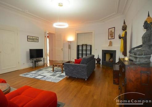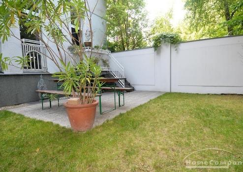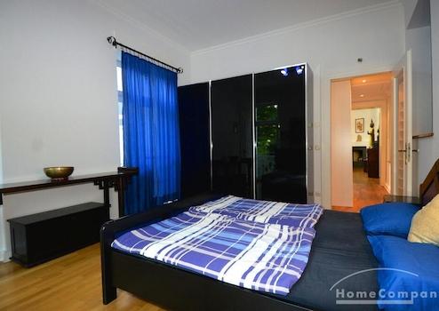 Sehr hochwertige 4 Zimmerwohnung in Berlin Charlottenburg mit eigenem Garten und Terasse. Die Wohnung vermittelt ein Einzelhaus Feeling, die Wohnung geht über die ganze Etage des Hauses. Ein weiteres Zimmer wird nicht mit vermietet und bleibt verschlossen.