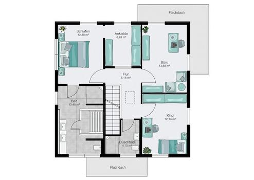 Das zweigeschossige Mehrfamilienhaus mit zwei Wohnungen überzeugt mit einer klassisch eleganten Architektur mit Walmdach und zwei behaglichen Terrassen. Der Hausentwurf kann mit Stahlbalkonen an der Gartenseite ...