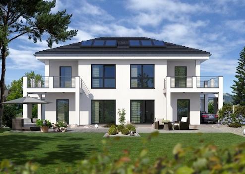 Das zweigeschossige Mehrfamilienhaus mit zwei Wohnungen überzeugt mit einer klassisch eleganten Architektur mit Walmdach und zwei behaglichen Terrassen. Der Hausentwurf kann mit Stahlbalkonen an der Gartenseite ...