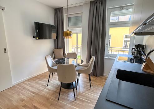 Diese stilvolle, vollmöblierte Wohnung im pulsierenden Herzen von Leipzig-Lindenau vereint urbanes Leben mit professionellen Ansprüchen. Das Apartment in einem liebevoll sanierten Altbau mit charaktervoller Fassade bietet die perfekte Symbiose aus privatem Wohlfühlraum und effizientem Arbeitsplatz. Der durchdacht gestaltete Hauptraum überzeugt durch optimale Raumnutzung und behagliche Atmosphäre. Ein komfortables Doppelbett sorgt für erholsame Nächte, während eine zusätzliche Schlafgelegenheit flexibel Platz für Besucher schafft. Ein ergonomisch positionierter Arbeitsplatz mit großzügigem Schreibtisch bietet ausreichend Raum für technische Ausstattung und Arbeitsmaterialien. Eine stabile Breitband-Internetverbindung ist bereits vorhanden und betriebsbereit - ohne lästige Anmeldeprozeduren oder Wartezeiten. Dies gewährleistet reibungsloses digitales Arbeiten für Videokonferenzen und Online-Meetings. Die moderne Küchenzeile ist komplett ausgestattet mit Herd, Backofen, Mikrowelle, Spülmaschine und Kühlschrank. Der Essplatz ermöglicht entspannte Mahlzeiten oder informelle Geschäftsgespräche. Für entspannte Abendstunden steht ein Smart-TV mit Streaming-Zugang bereit. Das zeitgemäß ausgestattete Duschbad mit komfortabler Duschzone rundet das Angebot ab. Leipzig-Lindenau gilt als einer der dynamischsten Stadtteile Leipzigs mit hervorragenden Verkehrsanbindungen ins Zentrum und zu Geschäftsvierteln. Die lebendige Nachbarschaft bietet zahlreiche Restaurants, Cafés und Einkaufsmöglichkeiten. Ideal für Geschäftsreisende, Remote-Worker und alle, die temporär eine vollausgestattete Unterkunft mit professionellem Ambiente suchen.