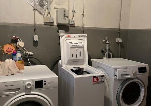 Zur Wohnung gehören ein Privatkeller, ein gemeinschaftlicher Wasch-und Trockenraum sowie ein Fahrradkeller. Der kleine Grünstreifen hinter dem Haus kann gemeinschaftlich genutzt werden.