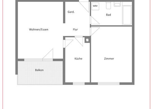 Die hell und freundlich gestaltete Wohnung im 2. Stock ist aufgeteilt in einen Flur, ein Schlafzimmer, ein Bad mit Badewanne, Waschbecken und WC, eine Küche mit Einbauküche und Essplatz sowie in ein einladendes Wohnzimmer. Über dieses gelangen Sie auf den nach Süden gerichteten Balkon.