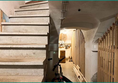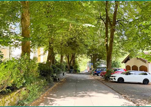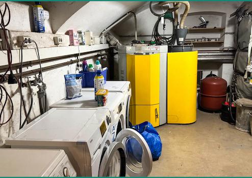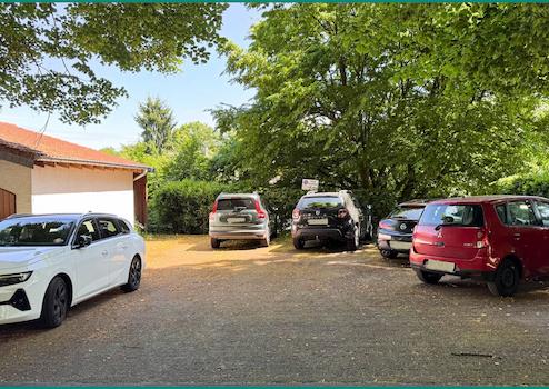 Zum Haus gehören sieben Pkw-Stellplätze auf einem Parkplatz, gegenüber dem Gebäude auf der anderen Straßenseite gelegen und ein Kellerraum pro Wohnung, zzgl. der Gemeinschaftsreiche mit Aufstellmöglichkeit für Wasch- und Trockengeräte.