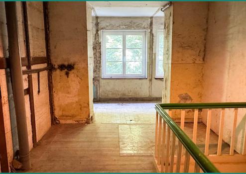 Die Böden im Treppenhaus sind nicht mit einer Original-Kachel ausgelegt. Hier hat man sich aber, wie auch in manchen Wohnungsfluren, für eine robuste und pflegeleichte Bodenkachel entschieden. Darüber hinaus sind die meisten Böden der Wohnungen mit unterschiedlichen Laminatarten ausgelegt. Nur die Dachgeschosswohnung verfügt noch über echte Dielenböden, die zum Teil aufgearbeitet werden müssten, sollten sie erhalten bleiben. Insgesamt gibt es nur einen geringen Renovierungsbedarf. Auch hier ist die sehr großzügig geschnittene Dachgeschosswohnung eine Ausnahme mit...