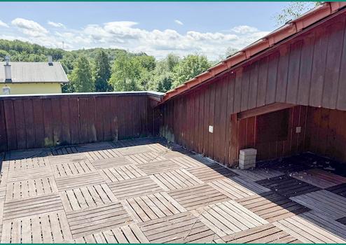Die Terrassen und Balkone wurden im Jahr 2014 angelegt bzw. angebaut und die Fenster gegen Türen ausgewechselt. Die beiden Maisonettewohnungen im 1. Ober- und 2. Obergeschoss über jeweils einen Balkon. Die Dachgeschosswohnung nutzt den zum Teil als Hobbyraum ausgebauten und gedämmten Speicher, welcher ausschließlich von der Dachgeschosswohnung zugänglich ist. Über den Speicher ist eine große Dachterrasse mit unverbaubarem Panoramablick ins Grüne begehbar.