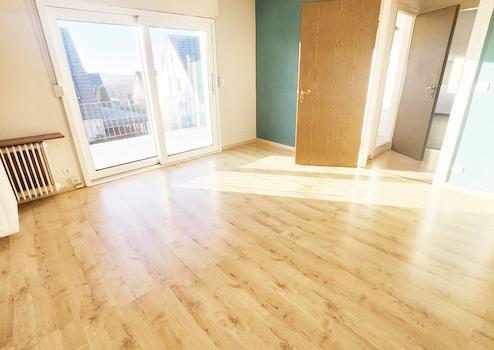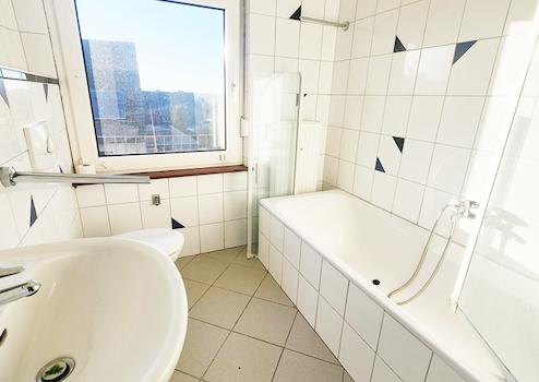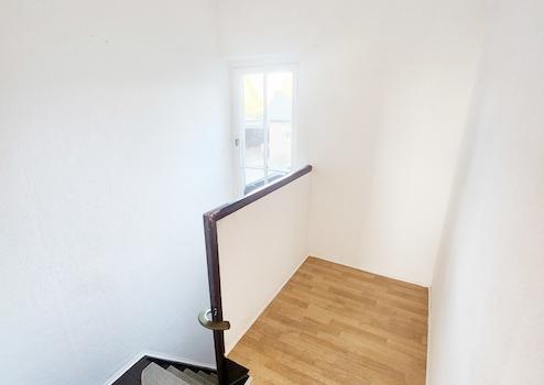 zum Obergeschoss, die ebenfalls über ca. 105 Quadratmeter Fläche verfügt. Diese Räumlichkeiten sind nachträglich entstanden, Unterlagen in der Bauakte sind nicht vorhanden. In der zuletzt als Wohnraum genutzen Etage erwarten Sie drei gut geschnittene Zimmer, eine Küche und ein Badezimmer. Der Boden ist überwiegend mit pflegeleichtem Laminat ausgelegt. Das freundliche Badezimmer ist zeitlos weiß gefliest und mit einer Badewanne sowie einem Fenster für gutes Tageslicht und optimale Belüftung ausgestattet. Das absolute Highlight dieser Etage ist zweifellos der großzügige Balkon: Mit seiner idealen Süd-West-Ausrichtung fängt er die Sonne bis in die Abendstunden ein und lädt zu entspannten Momenten im Freien ein – ein wunderbarer Platz, um den Feierabend zu genießen.