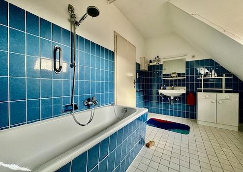Im Obergeschoss des Hauses liegen die Schlafzimmer, zwei Bäder und das große Wohnzimmer, sowie ein Büro.