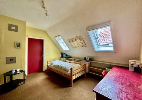 Insgesamt beherbergt das Obergeschoss neben den Bädern und dem Wohnzimmer fünf mögliche Schlafzimmer in unterschiedlichen Größen.