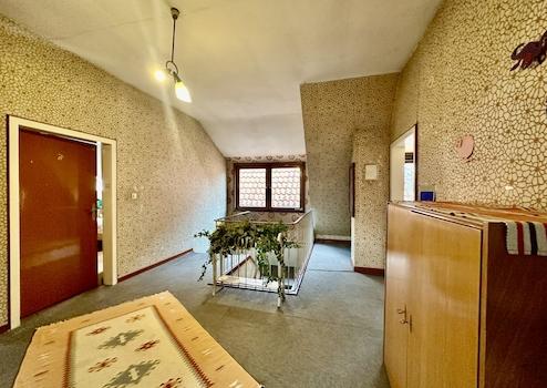 Hier finden Sie zwei geräumige Kammern als Abstellmöglichkeit und den Zugang zu dem Dachboden.