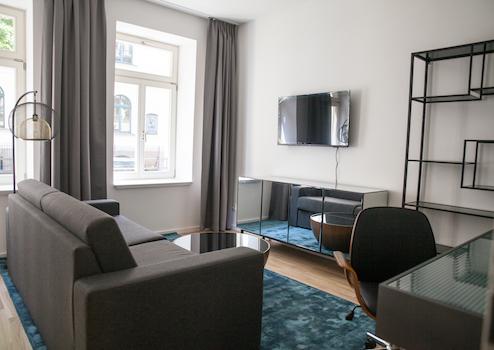 Die moderne Einbauküche ist im Mietpreis enthalten und mit hochwertigen Elektrogeräten ausgestattet.