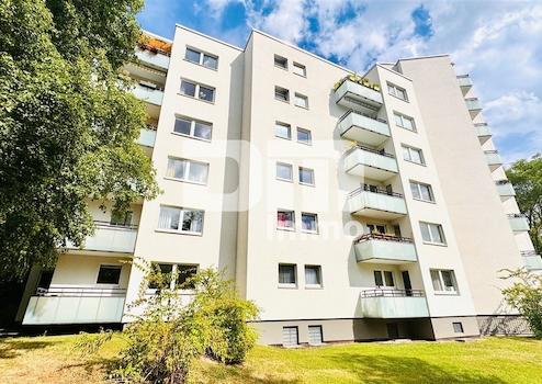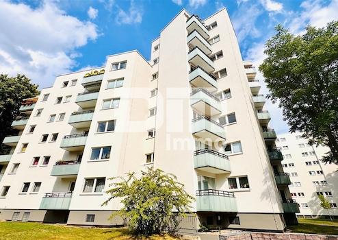 Bereits bei erster Außenbetrachtung überzeugt der in gepfegte Grünflachen eingebettete Wohnkomplex mit seiner in 2023 erneuerten Fassade inkl. sanierten Balkonen.