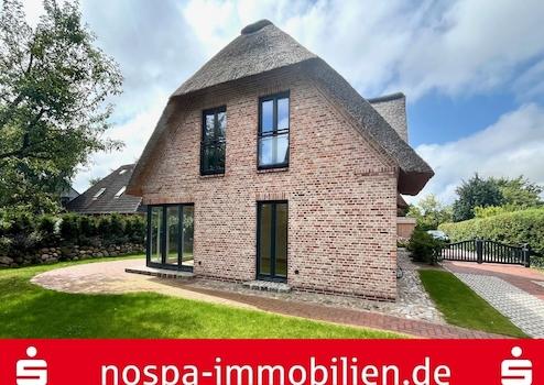 Exklusive Doppelhaushälfte unter Reet auf landschaftstypischen Grundstück mit Friesenwall, Terrasse & PKW-Stellplatz