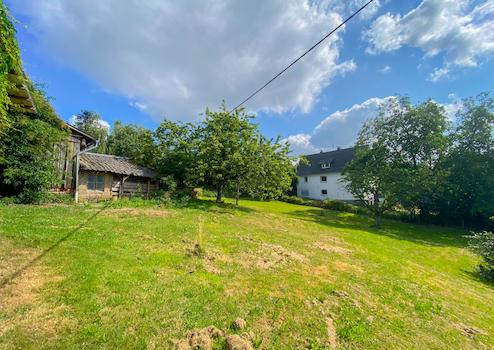 Dieses charmante Einfamilienhaus, ein ehemaliger Bauernhof aus dem 19. Jahrhundert, bietet eine seltene Gelegenheit für alle, die ein historisches Juwel liebevoll sanieren und mit neuem Leben füllen möchten. Auf einem großzügigen Grundstück von ca. 2.788 m², eingebettet in die idyllische Landschaft, können Sie sich Ihre Wohnträume erfüllen. Die Immobilie hat eine Wohnfläche von ca. 132 m², welche sich auf das Erd- und Obergeschoss verteilt. Im Erdgeschoss befinden sich drei Zimmer, zwei Bäder, eine großzügige Küche sowie ein direkter Zugang zum Keller und Stall. Das Obergeschoss umfasst drei weitere Zimmer und ein Badezimmer. Die Beheizung erfolgt wahlweise über einen Kamin oder die Gas-Zentralheizung. Im Außenbereich erwartet Sie ein weitläufiger Garten mit zahlreichen Obstbäumen, eine große Garage, zwei Scheunen, einen Stall, welche Tierhaltung ermöglicht, eine Jauchegrube sowie ein eigener Brunnen. Die ruhige Ortsrandlage des Hauses, umgeben von der unberührten Natur, verleiht diesem Anwesen eine einzigartige Atmosphäre der Entspannung und Erholung. Zusätzlich besteht die Möglichkeit, Wiesengrundstücke mit einer Gesamtfläche von ca. 5,3 ha zu erwerben - ideal für Naturliebhaber, Tierhaltung oder weitere Nutzungsmöglichkeiten.