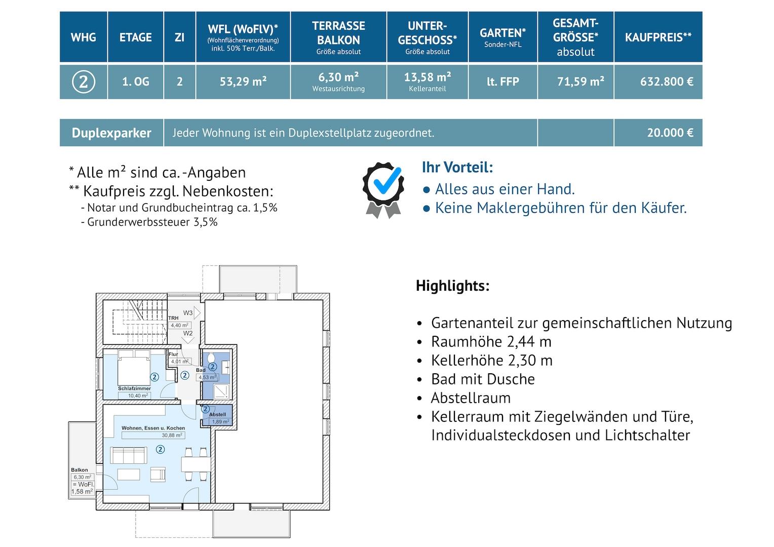 | Stellplatz Duplex Kaufpreis | 20.000 € |