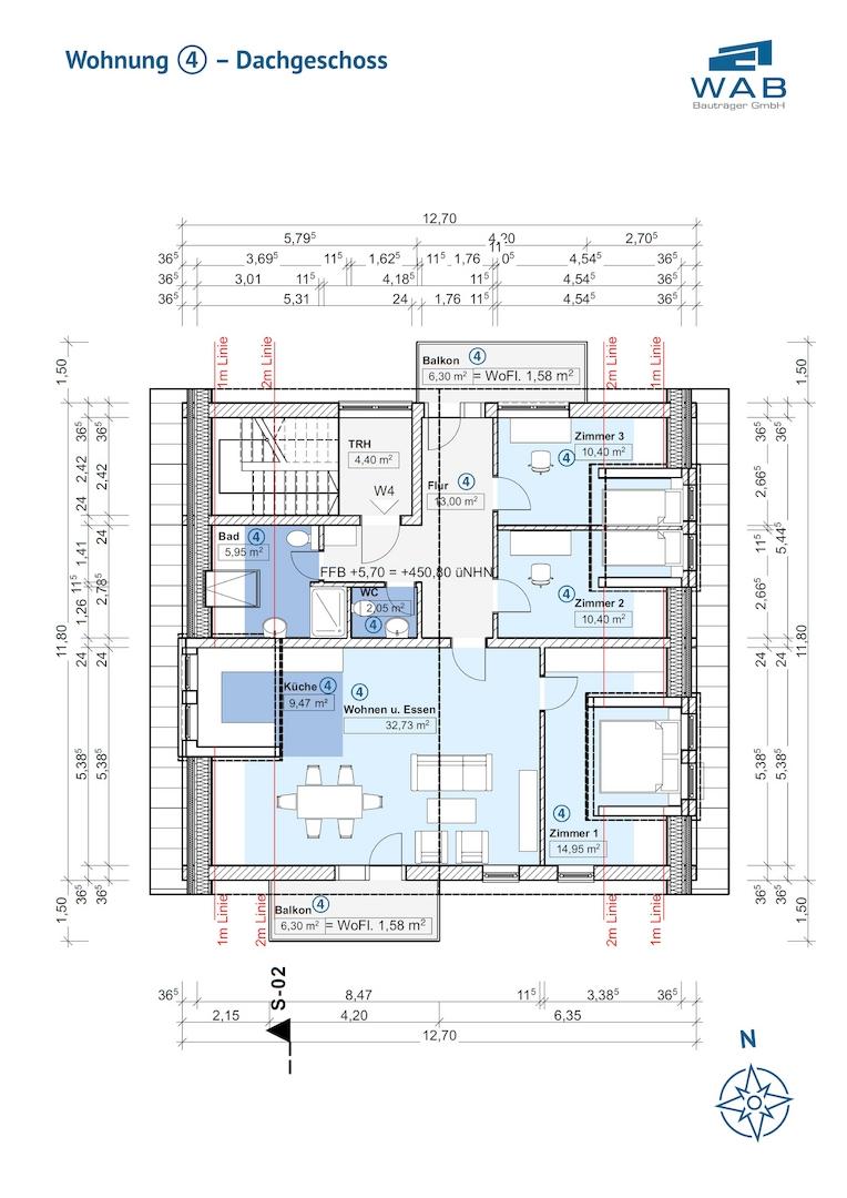 4-Zimmer Neubau Luxuswohnung (4), mit 2 Balkonen im Dachgeschoß