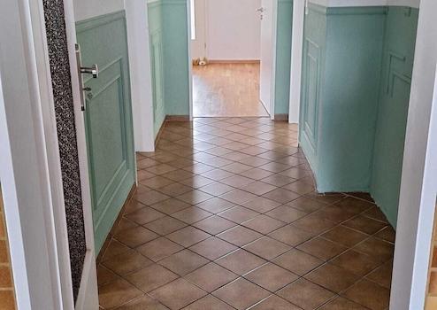 Die Kombination aus Fliesen, Laminat und Parkett als Bodenbeläge sorgt nicht nur für ein ästhetisches Ambiente, sondern bietet auch praktische Vorteile - die Fliesen sind pflegeleicht, das Laminat ist robust und das Parkett vermittelt Wärme und Behaglichkeit.