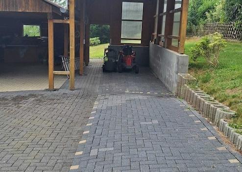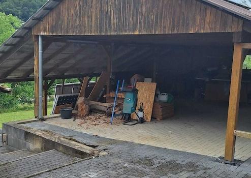 Für den fahrbaren Untersatz ist mittels einer ca. 102m² großen Garage, einem Carport für Wohnmobil und etwa 10 PKW-Stellplätzen ausreichend gesorgt.