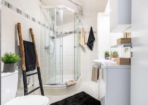Sie wünschen sich doch lieber etwas mehr Ruhe? dann lädt das im zeitlosen Design gestaltete Badezimmer mit Dusche, zum Entspannen ein.