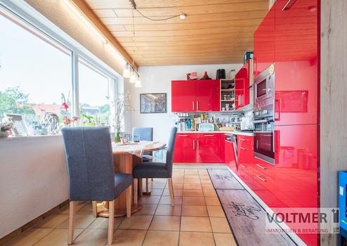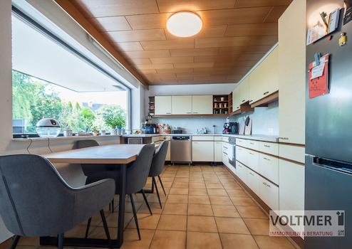 > Küche mit Essbereich & Zugang zum überdachten Balkon