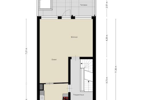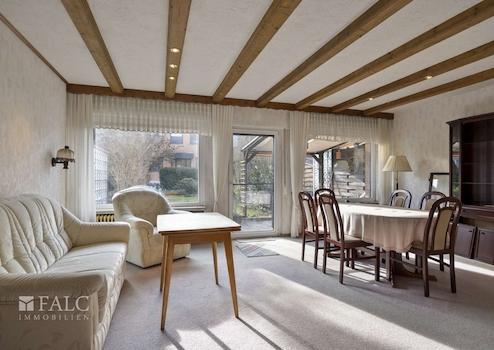 Das Haus besticht durch seine großzügige Wohnfläche von ca. 153 Quadratmetern, die sich über zwei Etagen sowie Dachgeschoss erstreckt. Im Erdgeschoss befindet sich das Wohn und Esszimmer mit Ausgang zur Terrasse , Küche sowie Gäste WC.
