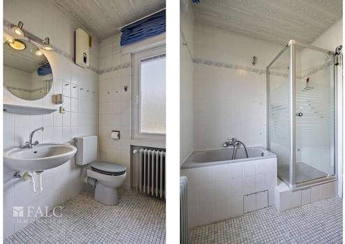 Im Obergeschoss finden sich drei geräumige Schlafzimmer, die viel Platz zur Entfaltung bieten. Das Badezimmer ist mit einer Badewanne, einer separaten Dusche und einem Waschbecken ausgestattet. Ein zusätzliches Gäste-WC ist im Erdgeschoss vorhanden.