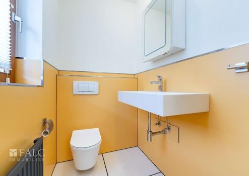 Vom Wohnzimmer aus gehen Sie in die hochwertige, moderne Küche, auch diese sehr hell durch das große Fenster. Anschließend an die Küche ist ein Bad mit Waschbecken und Toilette und im Vorraum hat Ihre Waschmaschine Platz.