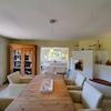 Parkett im OG. Heimkino im EG-Wohnbereich mit bei Nichtbenutzung unsichtbar versenkter Projektionsfläche und Verdunkelungsrollos. Herrlicher Ausblick von allen Räumen in die umgebende Natur durch viele Fenster und Terrassentüren.