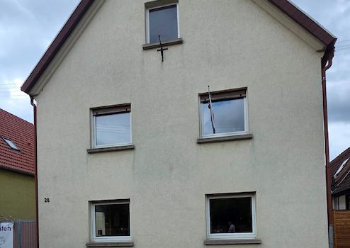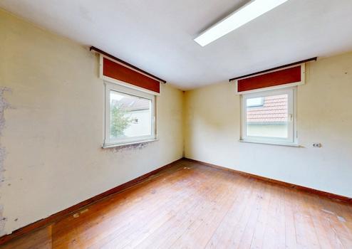 Dieses Einfamilienhaus mit einer Wohnfläche von ca. 150 m² wurde im Jahr 1954 erbaut und befindet sich in einer ruhigen Wohngegend. Das zweigeschossige Haus verfügt über insgesamt 7 Zimmer, darunter 4 Schlafzimmer und ein Badezimmer. Die Massivbauweise und das Satteldach geben dem Gebäude einen traditionellen Charme. Auf dem 1057 m² großen Grundstück befinden sich außerdem zwei Parkplätze im Hof und ein Keller.